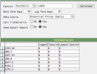 ITS users use a Multi-factor Regression tool that runs a least-squares regression on the portfolio to solve the beta relative to the chosen factor of USDBTC. The generated beta details can then be utilized by TS Imagine’s other risk tools, like a random Monte Carlo simulation.