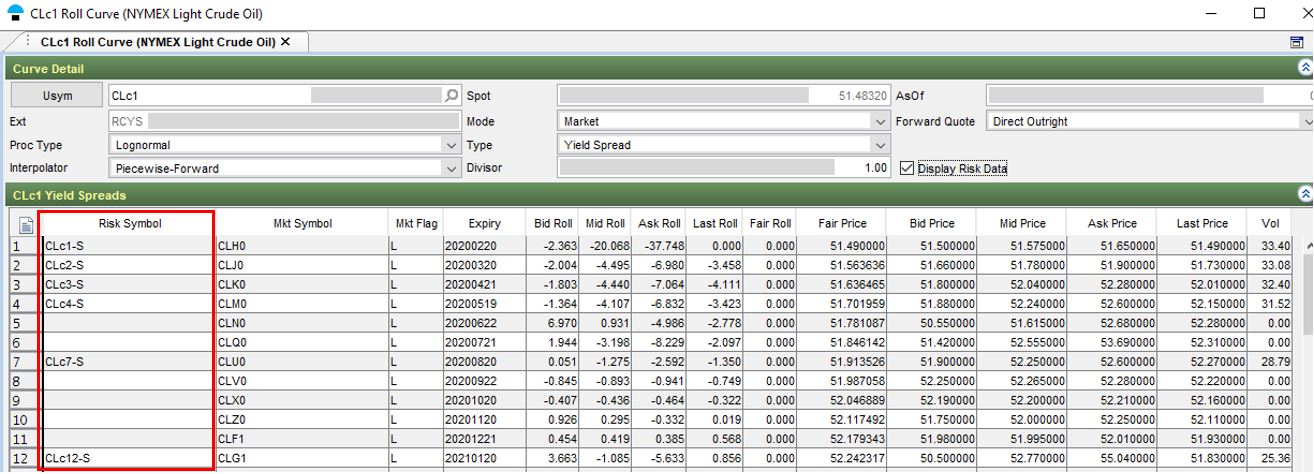 These symbols are used in TS Imagine’s RCYS extension roll curves. At present approximately 700 of TS Imagine’s roll curves are using these adjusted returns. To understand whether a roll curve is using adjusted returns, one can look for the “–S” suffix to the symbols in the “Risk Symbol” column of the roll curve.