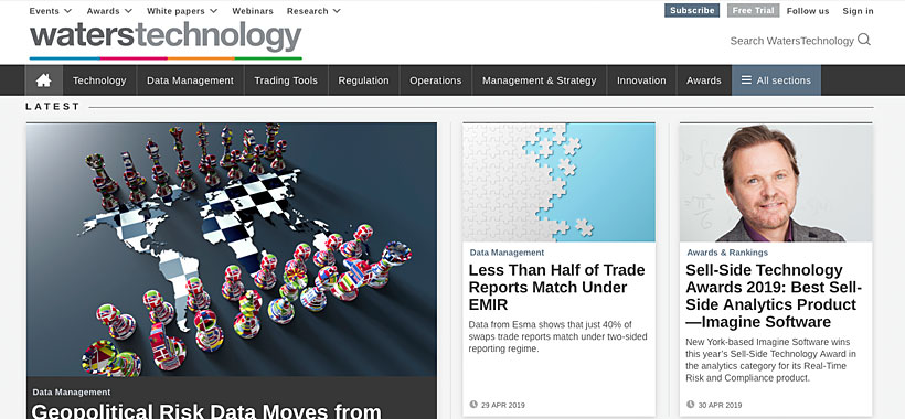 Data is the new oil, according to Waters Technology, and the lifeblood of any sell-side firm. "Enter TS Imagine, which wins this year's Sell-Side Technology Award in the analytics category for it's Real-Time Risk & Compliance (RRC) product, " writes James Rundle on waterstechnology.com.